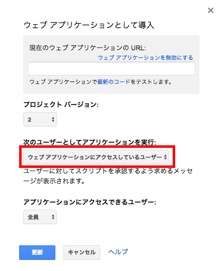 「ウェブアプリケーションにアクセスしているユーザー」にすることが必須です。