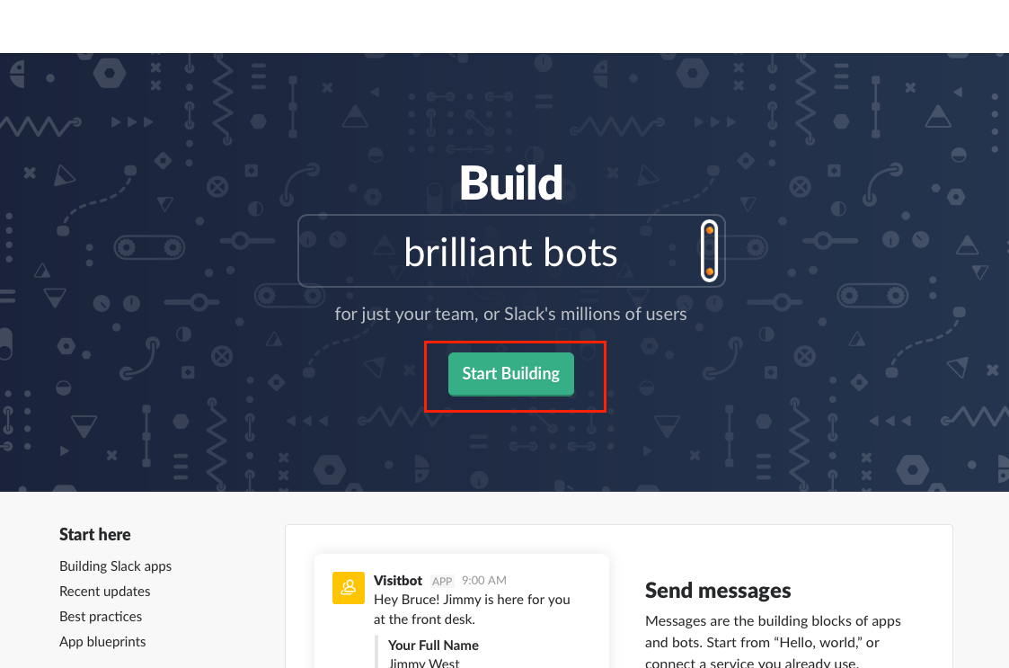 ②-1. SlackのAPIページ(https://api.slack.com/)へアクセスし、「Start Building」を選択