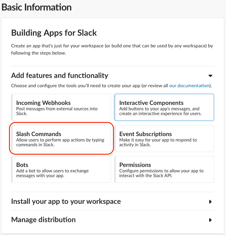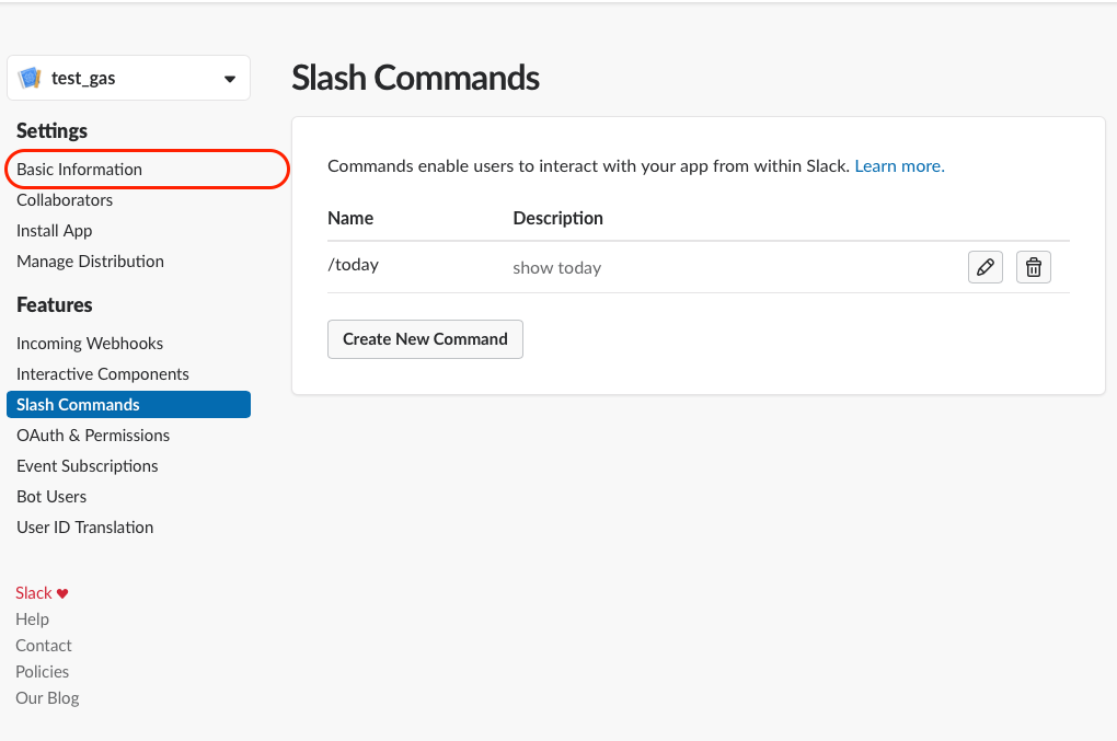 Settingsの「Basic Information」から「Install your app to your workspace」の